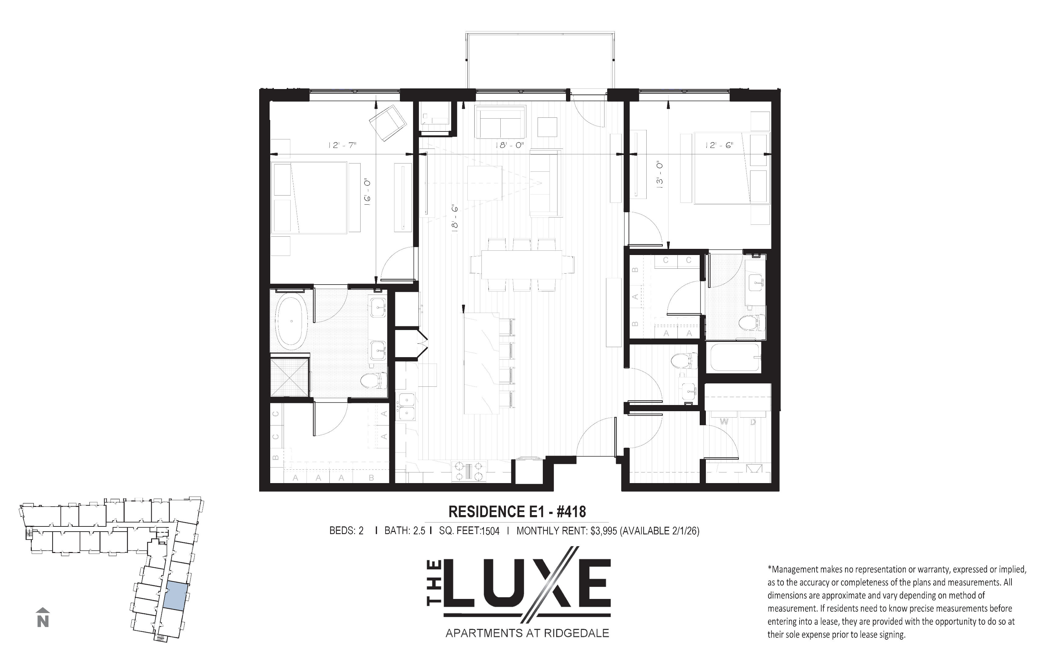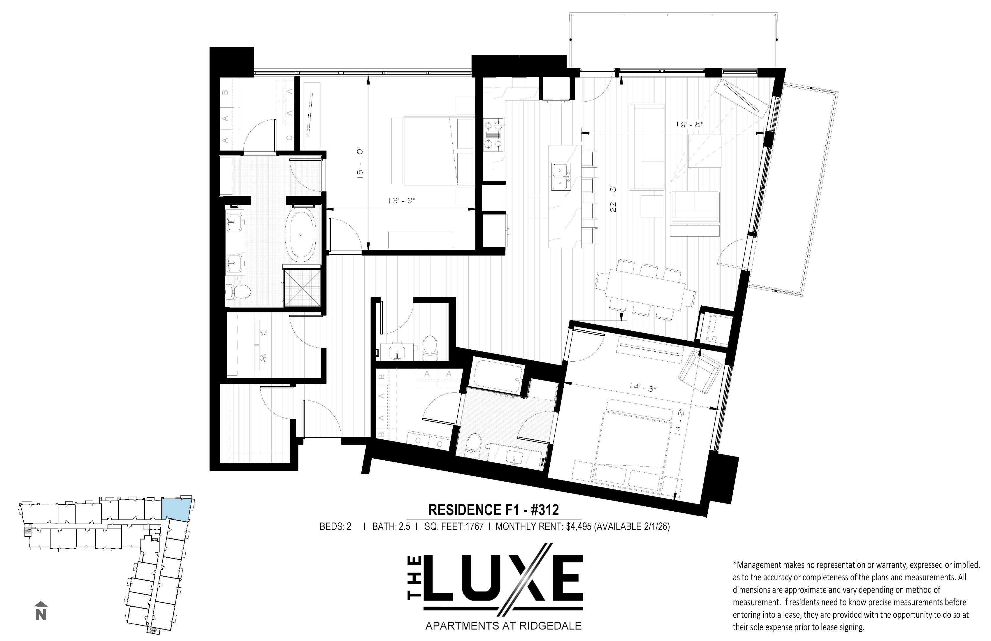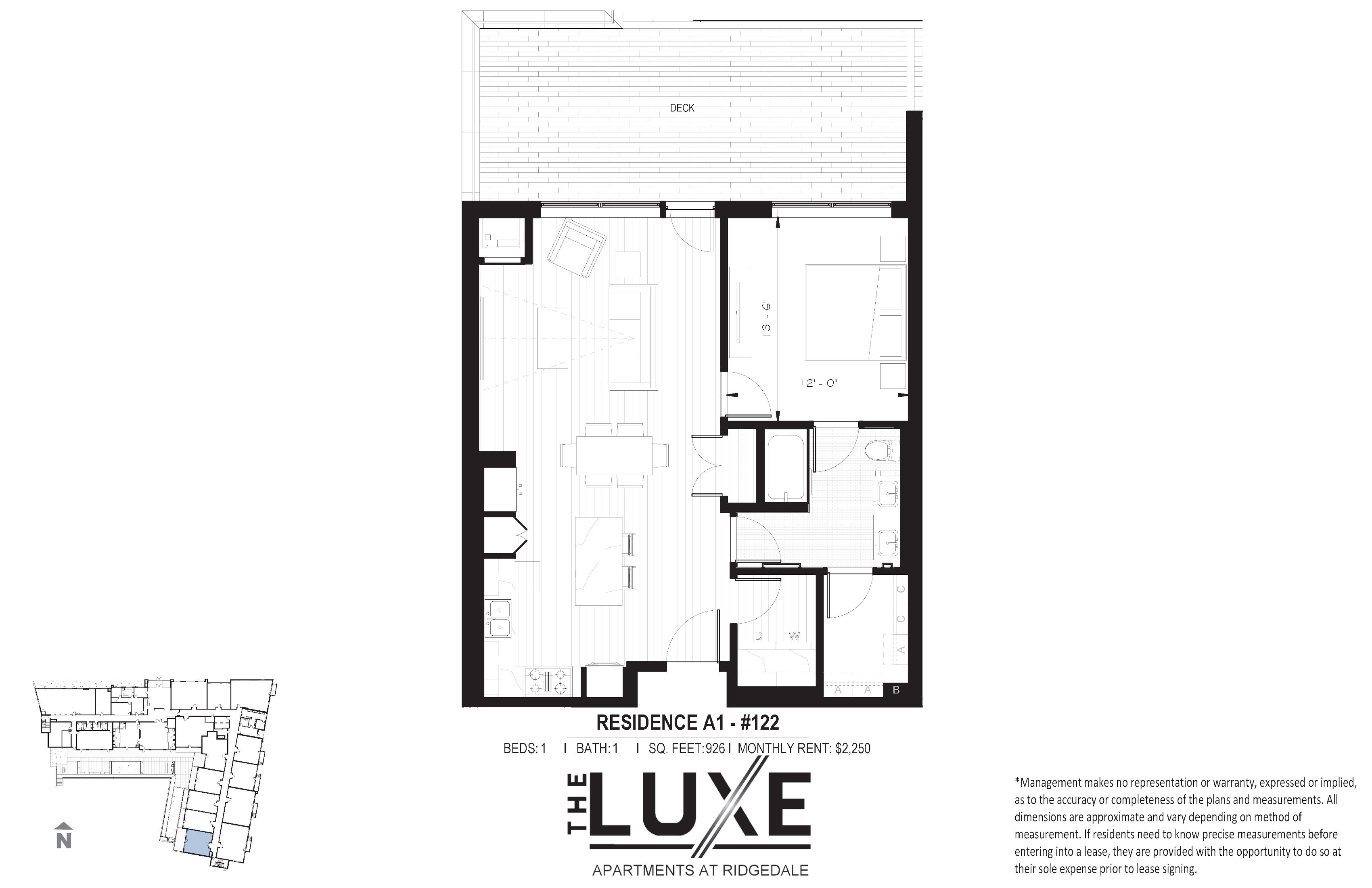 We attempt to keep the information contained in this website accurate and up-to-date. Nevertheless, the property owner and the leasing/property manager (collectively "we") cannot and do not warrant the accuracy or completeness of any information (including, but not limited to, text, graphics, videos, and floor plans) contained in this site, in any linked sites or in related materials. Drawing and dimensions are not to scale. No representations or warranties, express or implied, are made as to the accuracy or completeness of drawings, photographs, floor plans, dimensions, conditions, services, features, materials and amenities, all of which are subject to change without notice. We assume no liability for inaccuracies, errors or omissions. All dimensions and specifications (including square footages) are approximate. Unit availability, prices, special offers, floor plans, and specification levels are subject to change without notice or obligation. School, utility and governmental information should be verified with the appropriate agency or utility supplier.